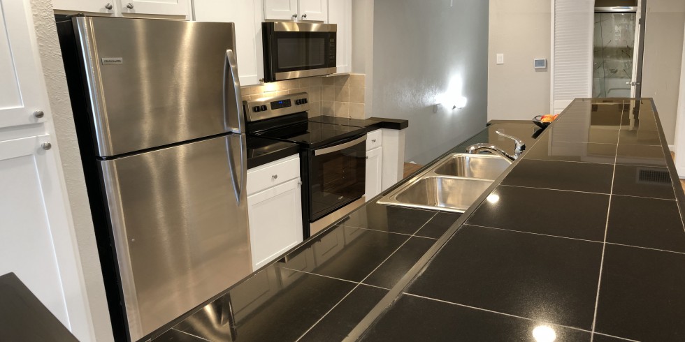 Kitchen - Black granite counters, high-end stainless steel appliances & tons of cabinets and counter space