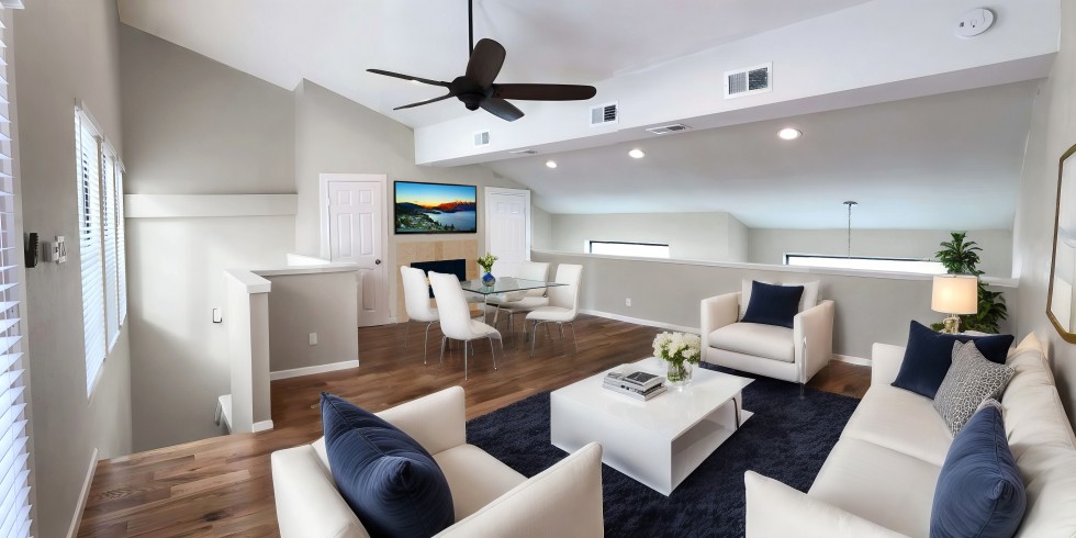 Living Room - View of the living room from the stairs leading to the 3rd floor