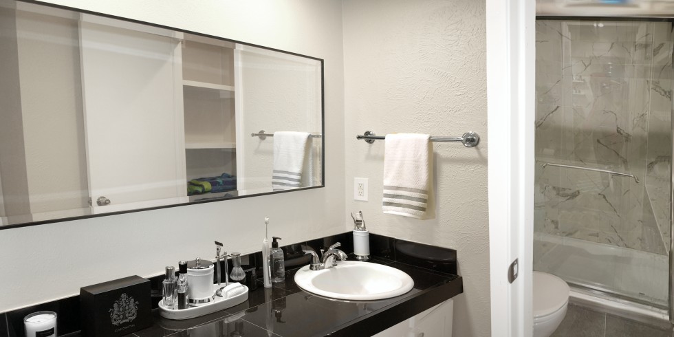 Master Bath - The Master Bath features granite counters, lots of built in shelving for towels & a beautiful extra large shower.