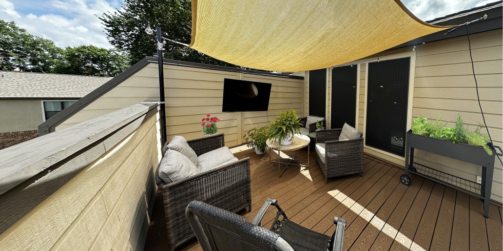 Roof Top Deck - Note - the umbrella in this image comes with the home, but the furniture does not